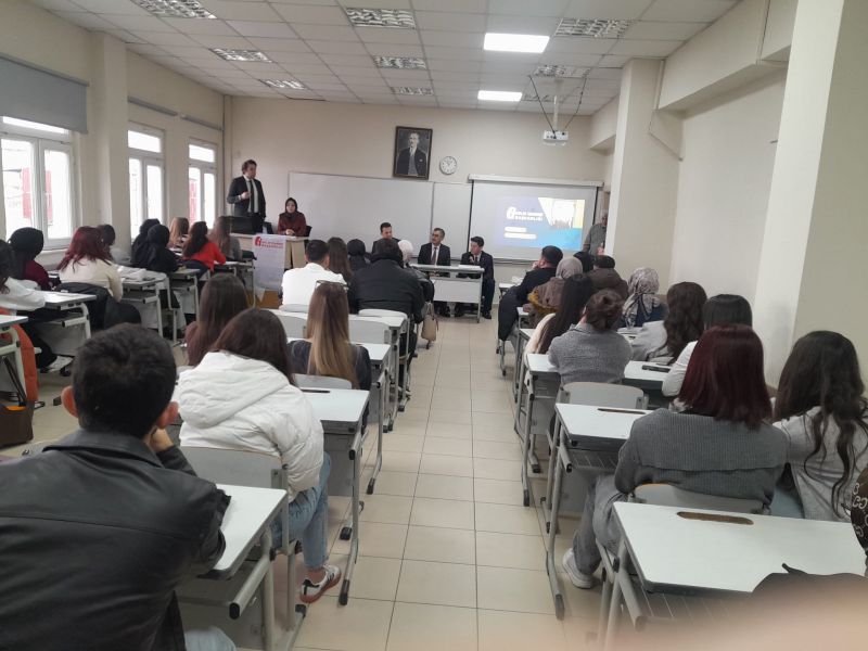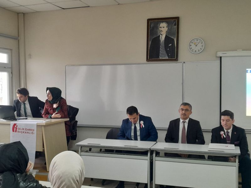37. Vergi Haftası kapsamında; kamuoyunda sağlıklı bir vergi bilincinin oluşturulması, verginin toplumun tüm kesimlerine benimsetilmesi ve vergide gönüllü uyum seviyesinin artırılması amacıyla Meslek Yüksekokulumuz Muhasebe ve Vergi Bölümü öğrencilerine yönelik 25.02.2026 tarihinde Ordu Defterdarlığı Gelir Yönetimi ve Denetim Müdür Yrd. Ali Ulvi YÜKSEL, Gelir Uzmanı Mustafa Selçuk ŞAHİN ve Birgül BUDAK tarafından bilgilendirme toplantısı yapıldı.